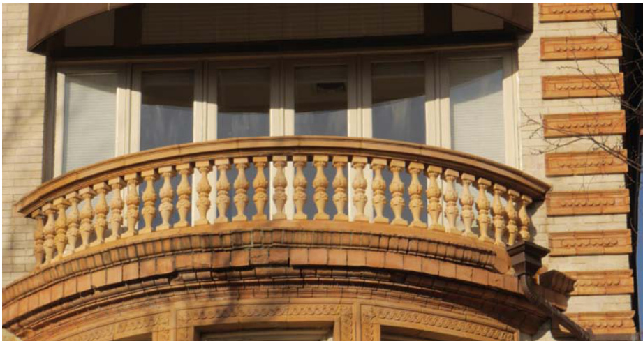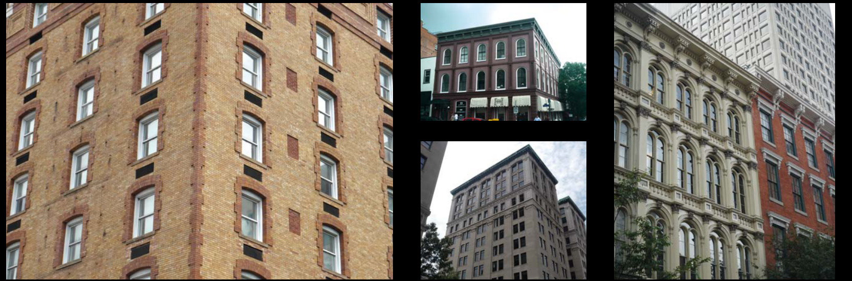 • 褐石住宅:主色为棕褐色和棕色,黑色为强调色(街灯、雨篷、窗户、栏杆)