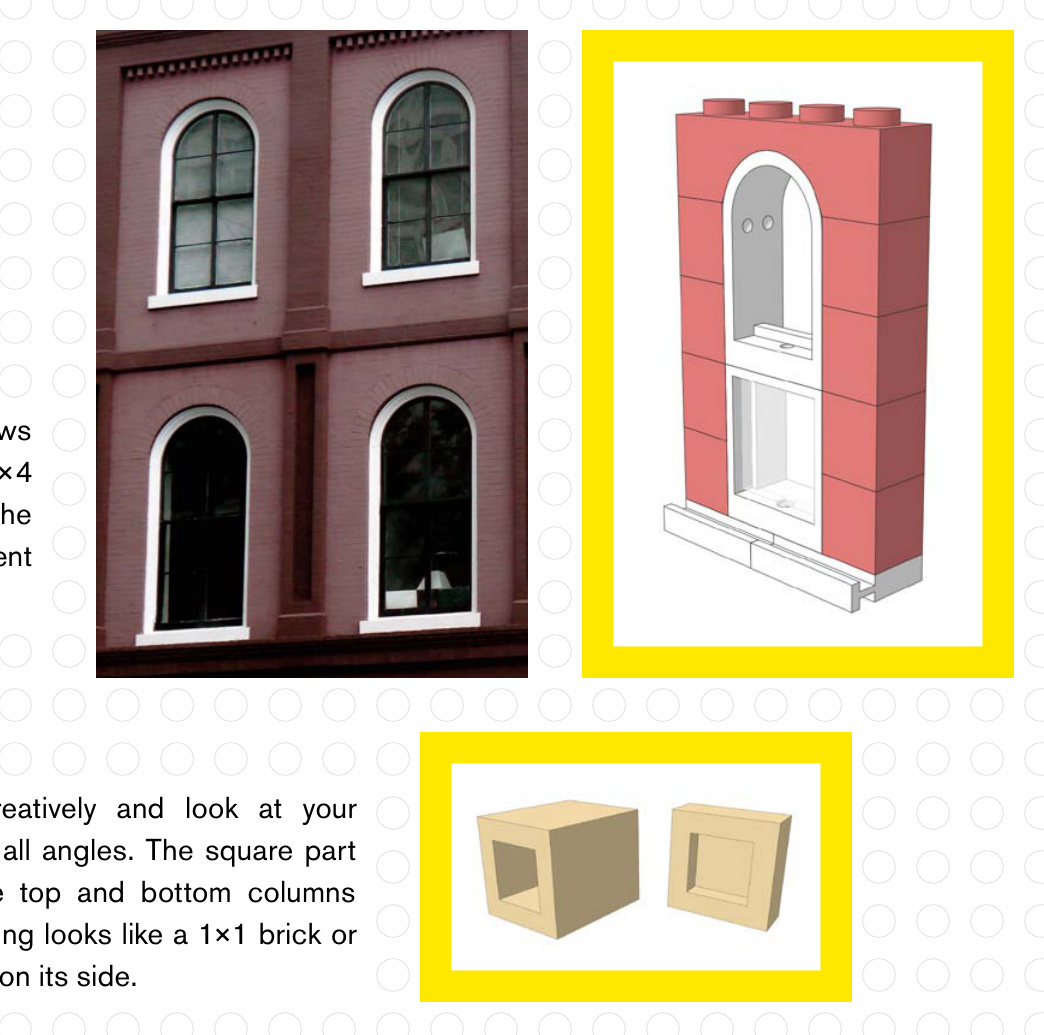 观察现实建筑中的窗户,立即识别可使用的乐高零件:
