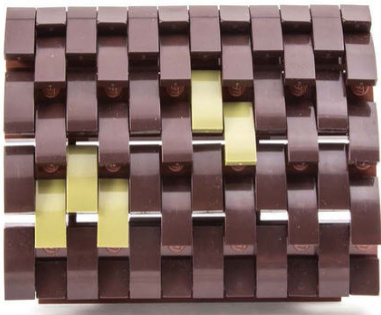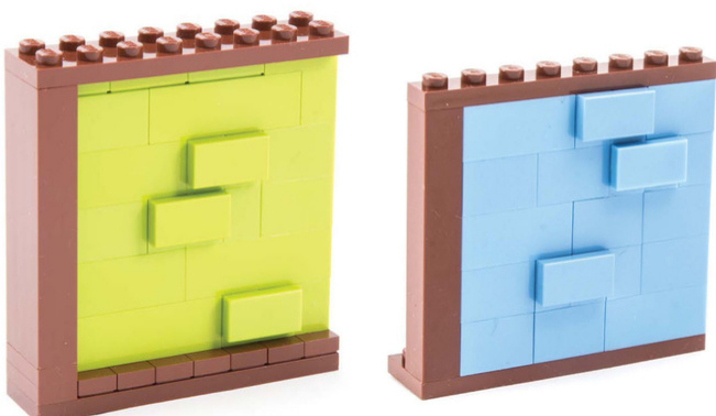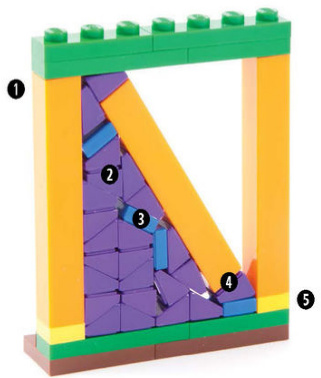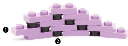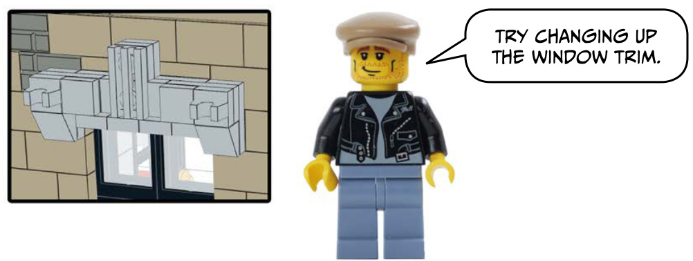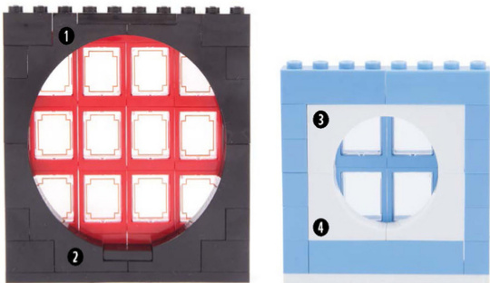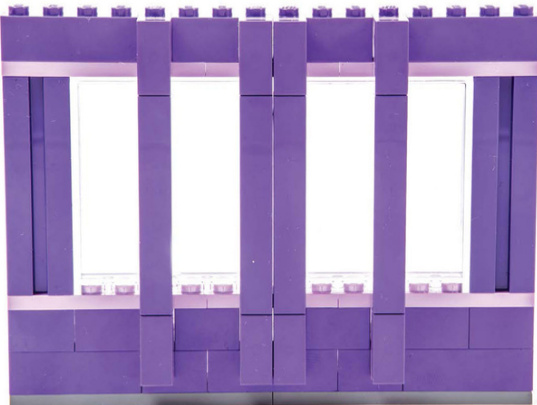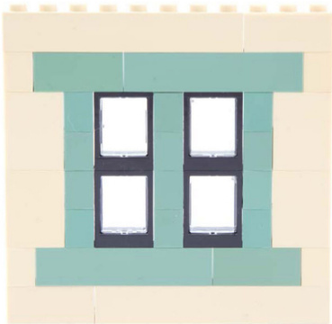 Use 1x4 curved slopes (#61678) and 1x4 inverted curved slopes (#13547)to frame the top and bottom edges of a window.