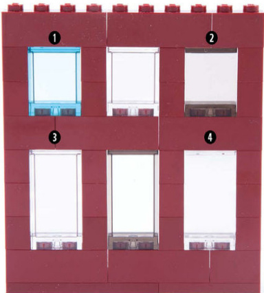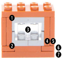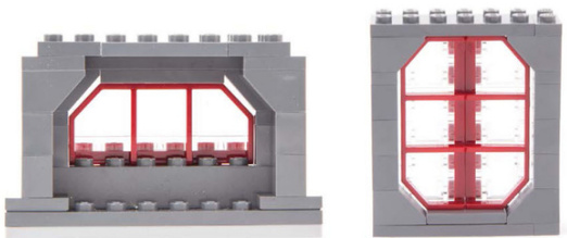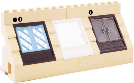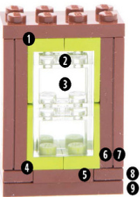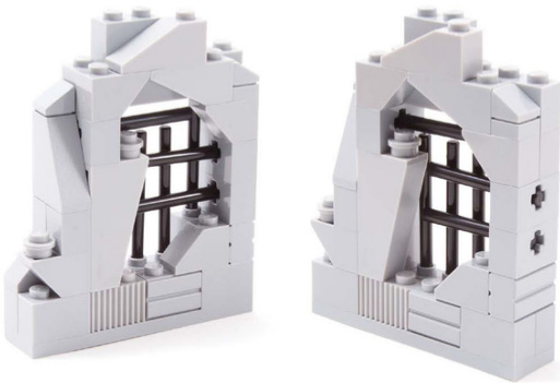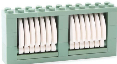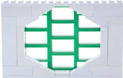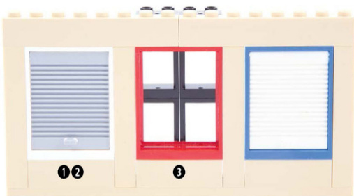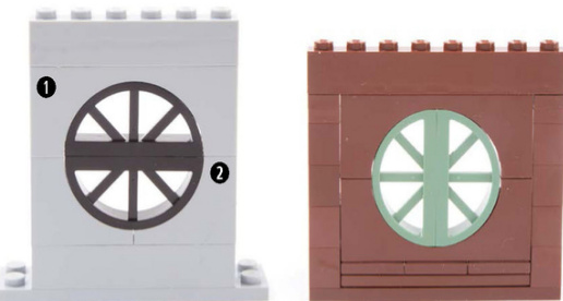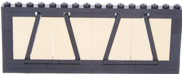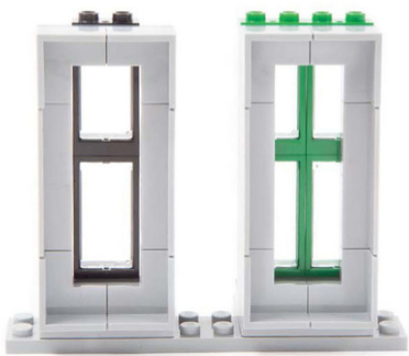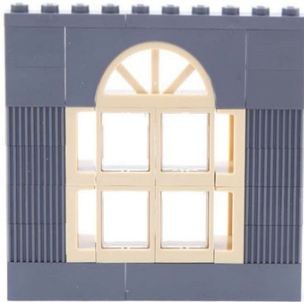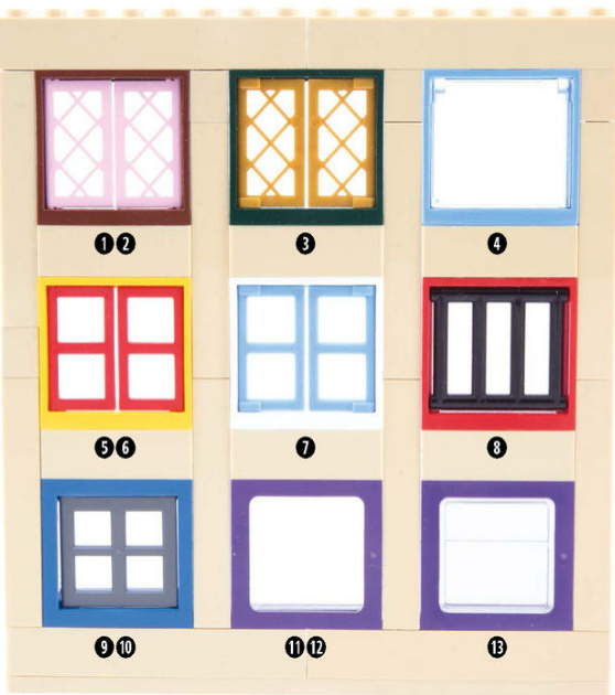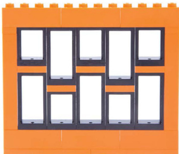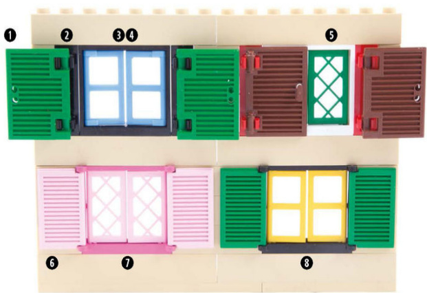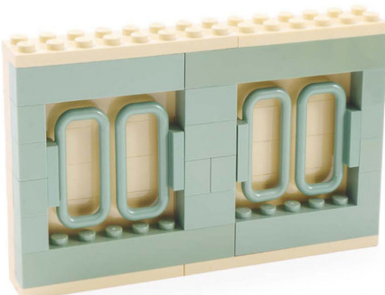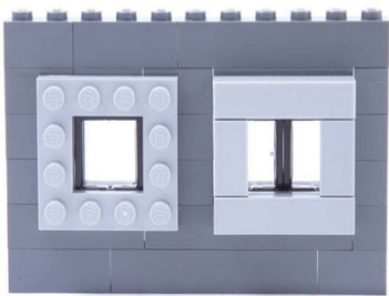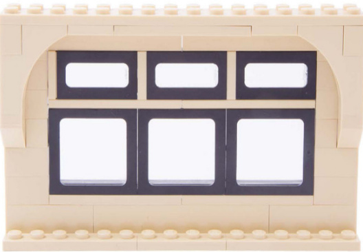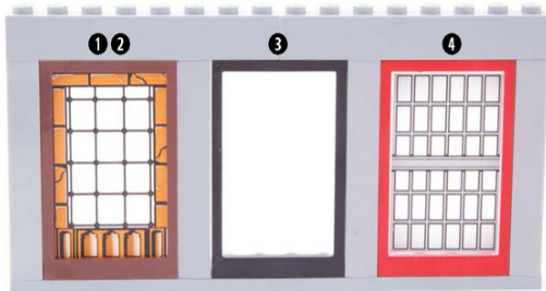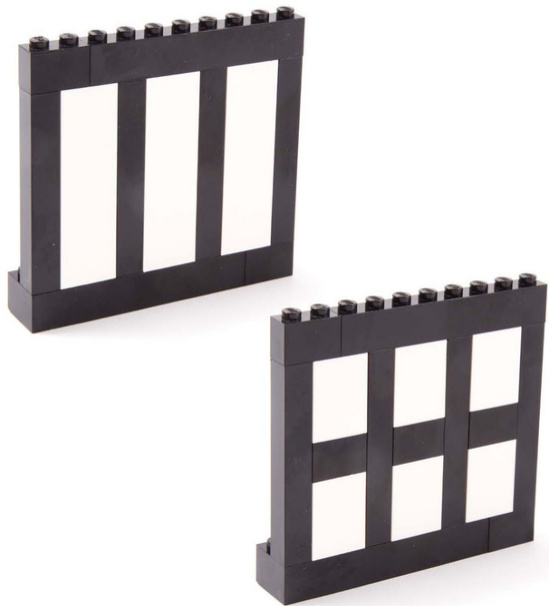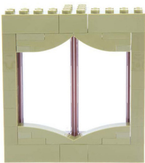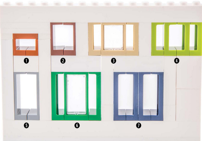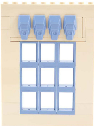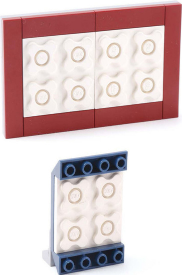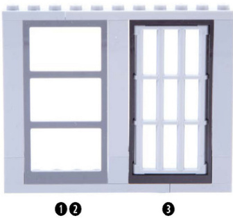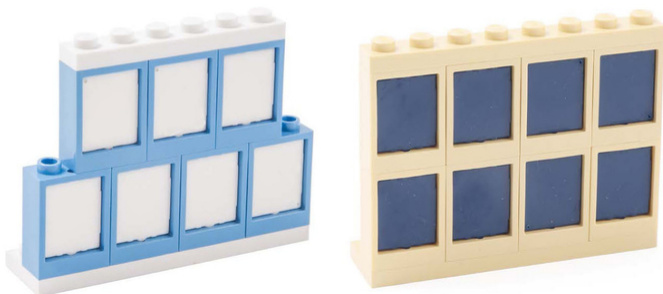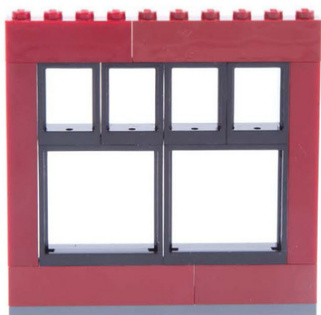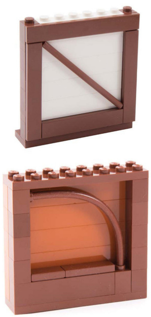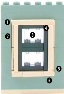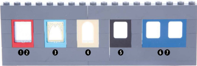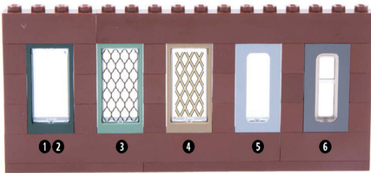 Repurpose a train element (1x6 modified plate with train wagon end #6583) to make ahorizontal orverticalwindow.