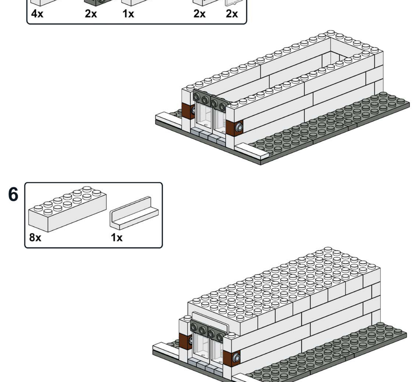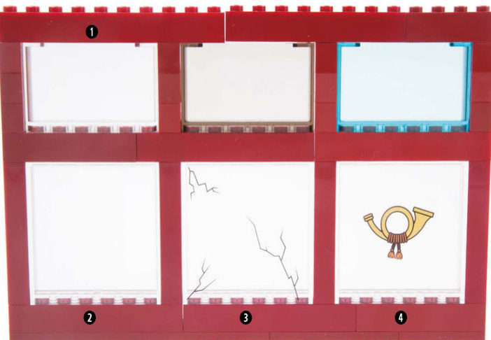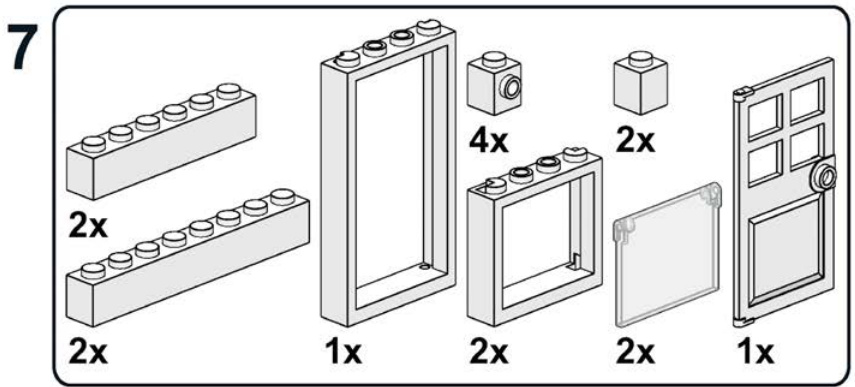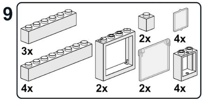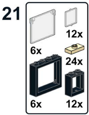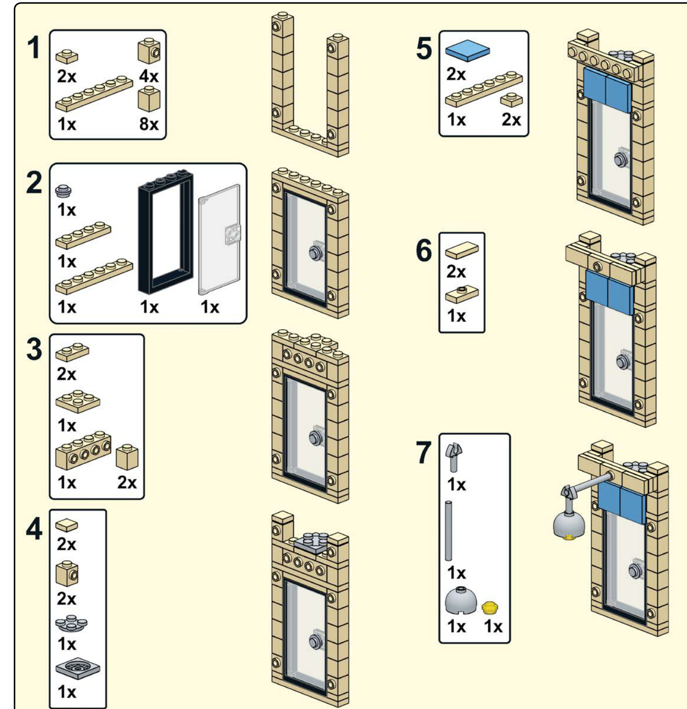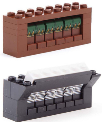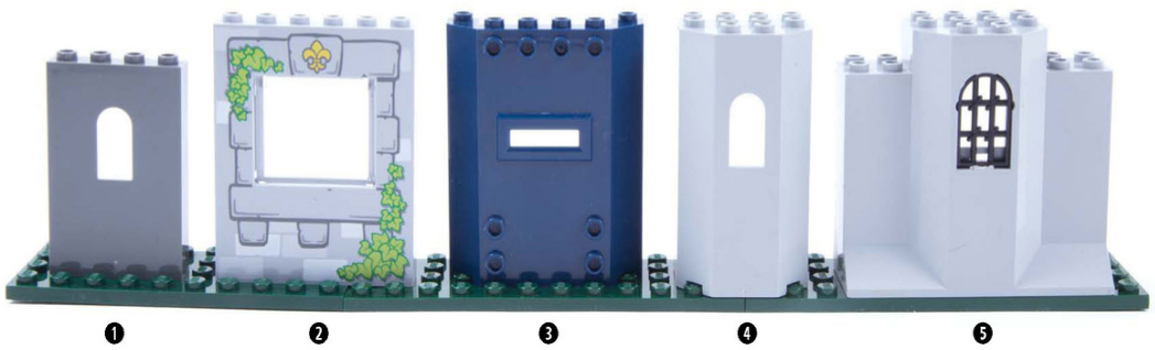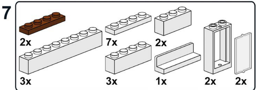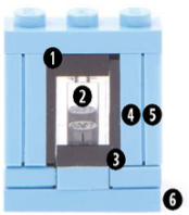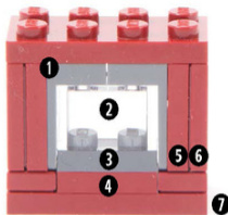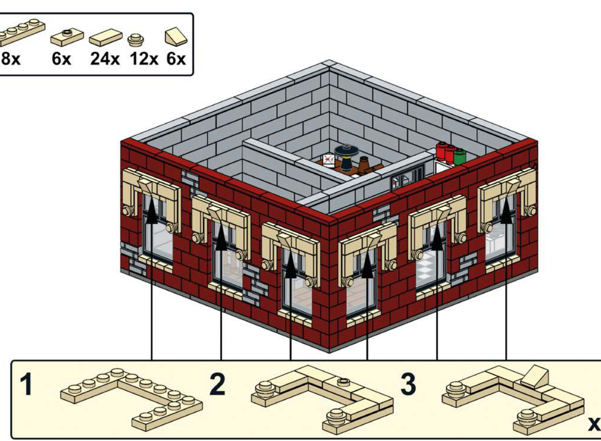 Repurpose a train element (1x6 modified plate with train wagon end #6583) to make ahorizontal orverticalwindow.