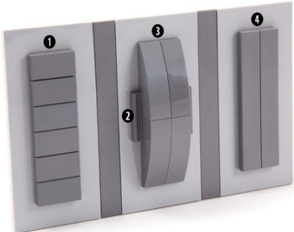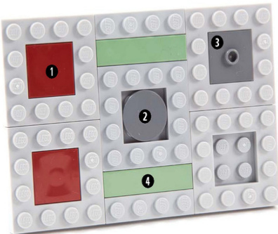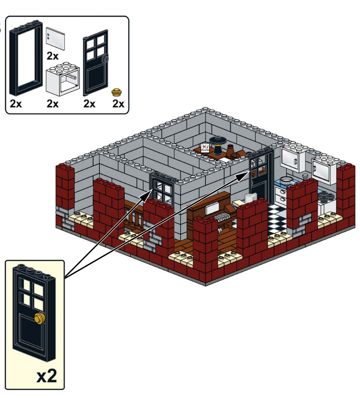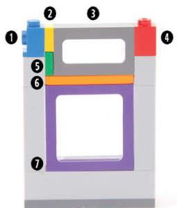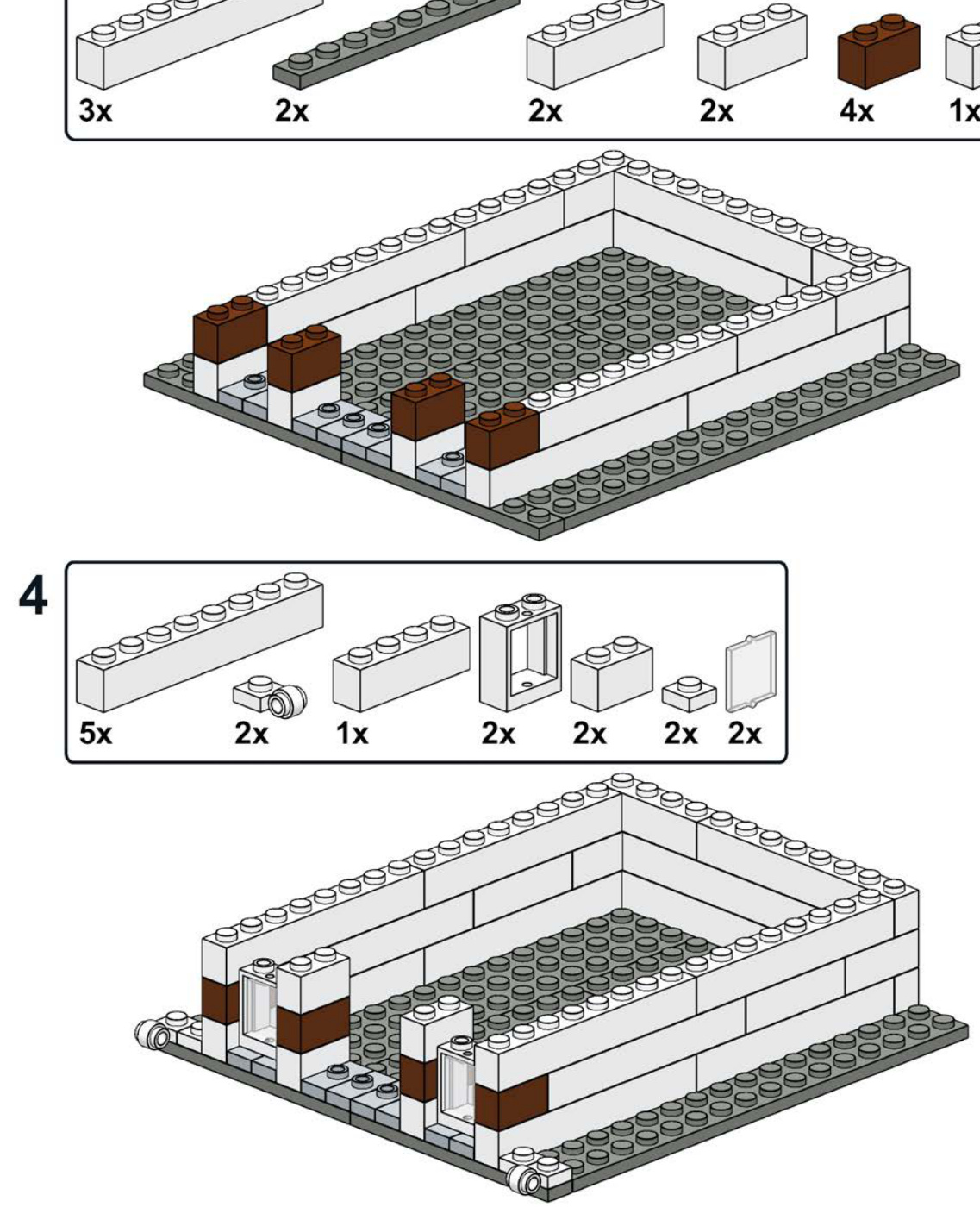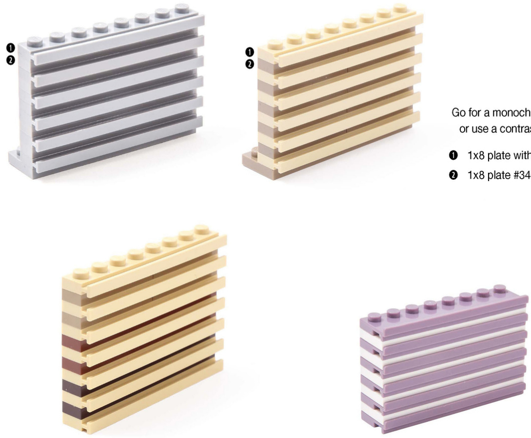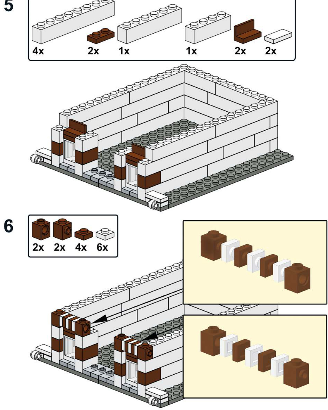 Repurpose a train element (1x6 modified plate with train wagon end #6583) to make ahorizontal orverticalwindow.