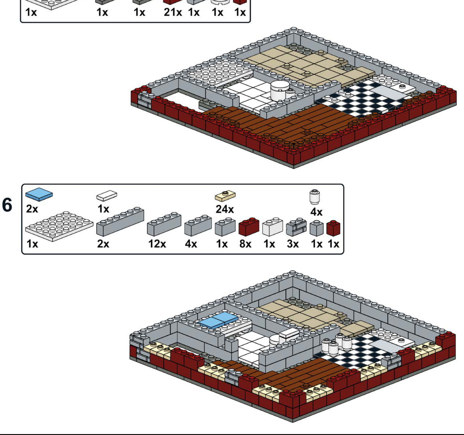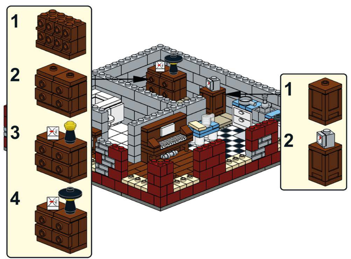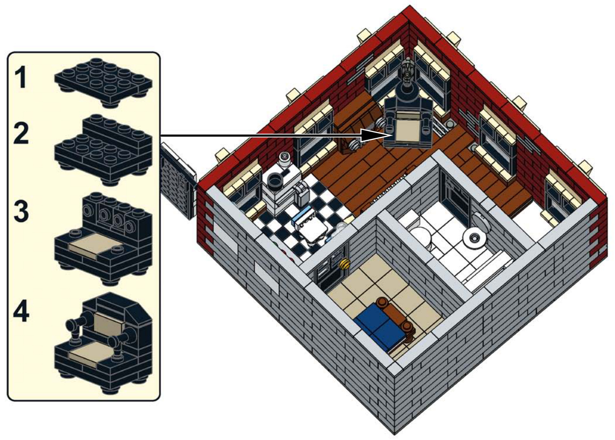 Furnishing the inside of your building can really help complete the overall look of your creation. In this chapter, we will go through each room of a house and show some furniture examples to help you get started. We hope these designs will inspire you to tinker and create your own versions for your building.