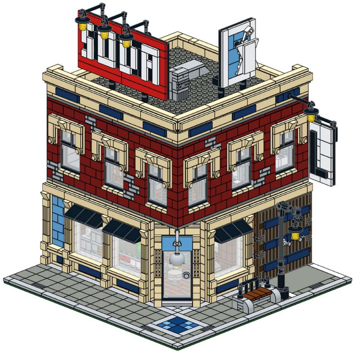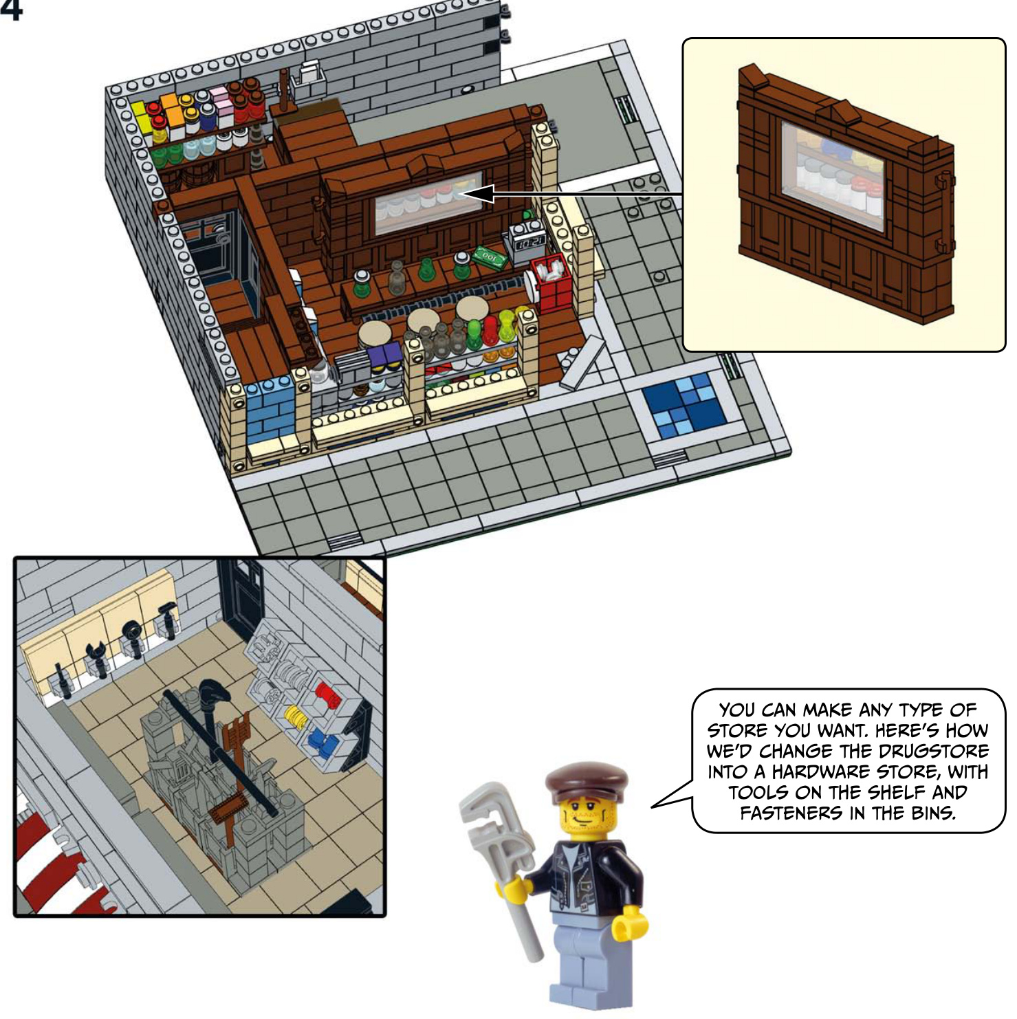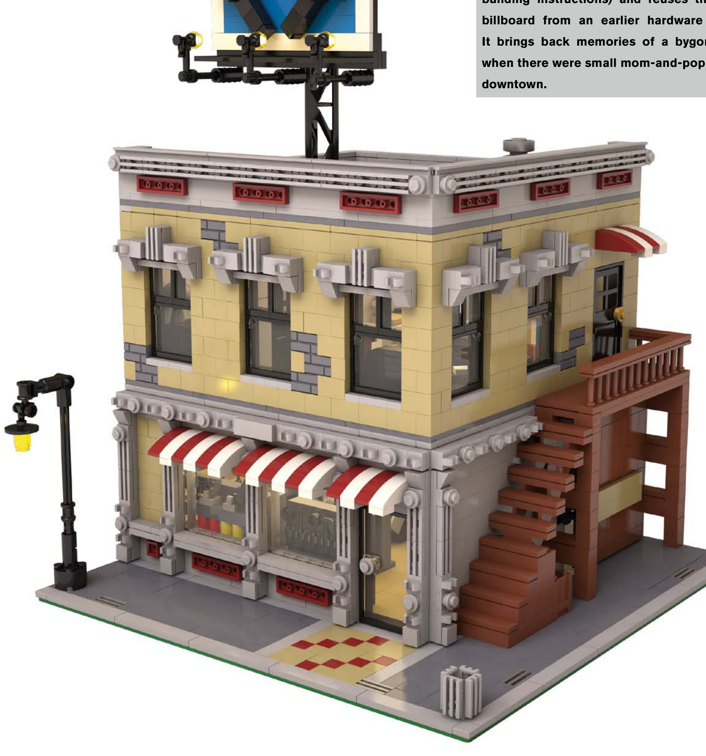 This corner hardware store is a variation on the Corner Drugstore (see page 81 for building instructions) and reuses the tool