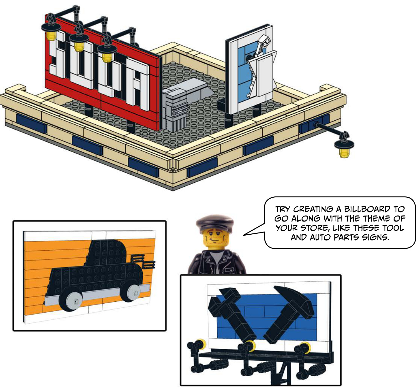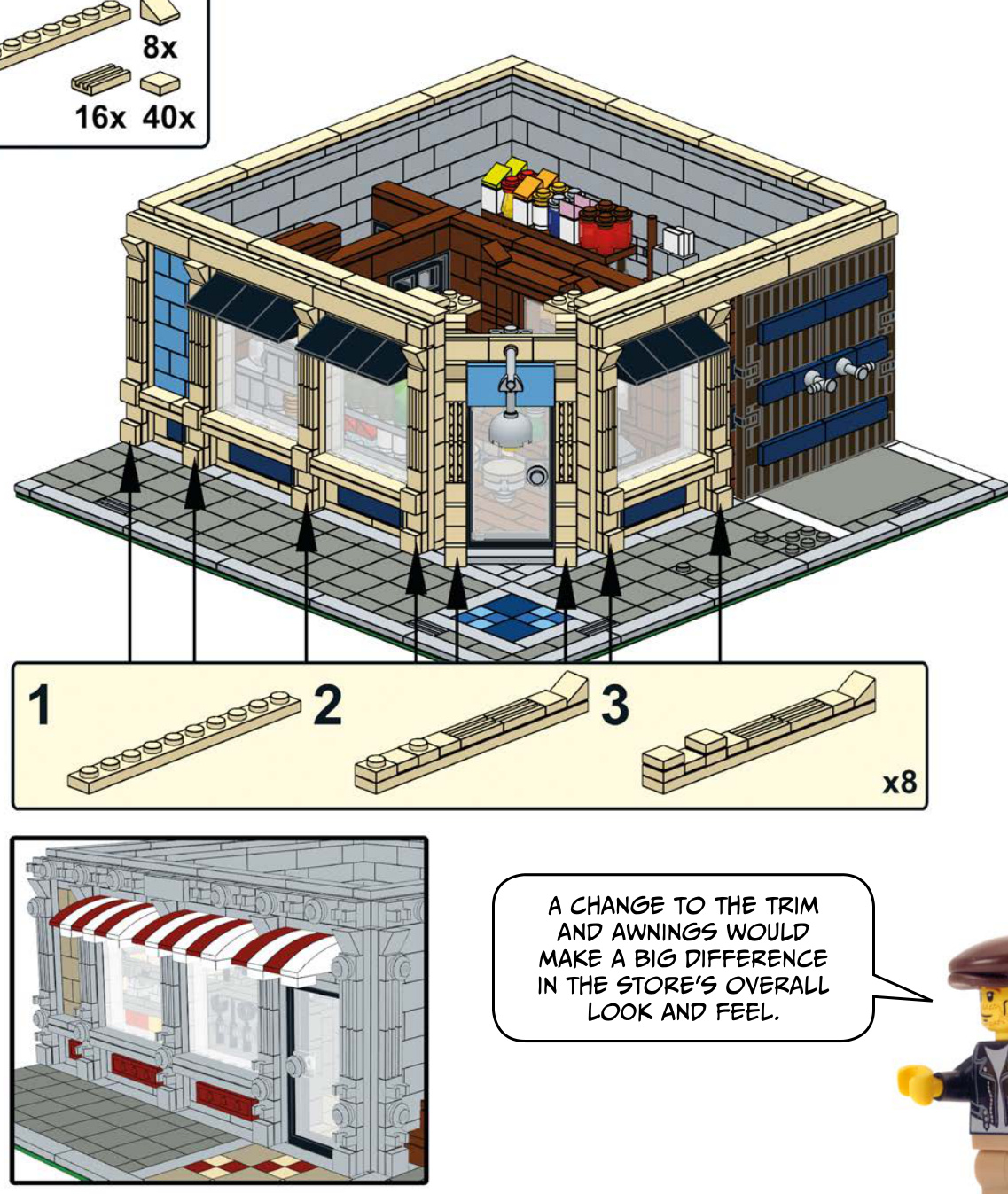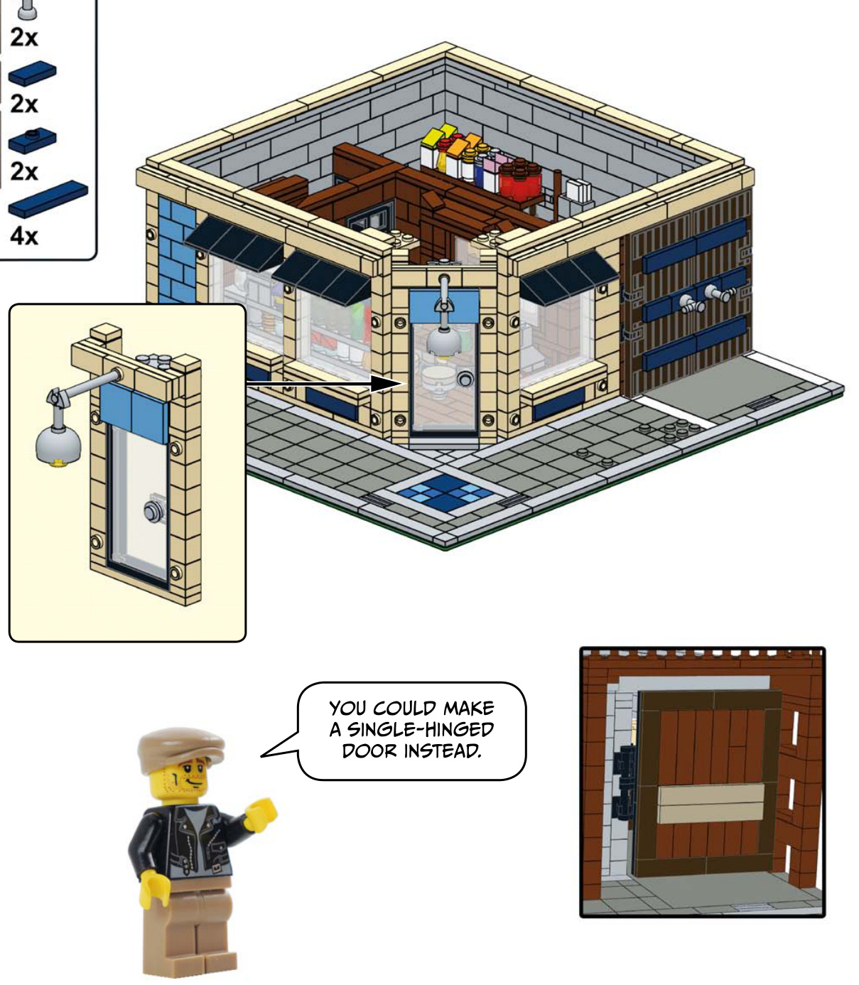 This corner hardware store is a variation on the Corner Drugstore (see page 81 for building instructions) and reuses the tool