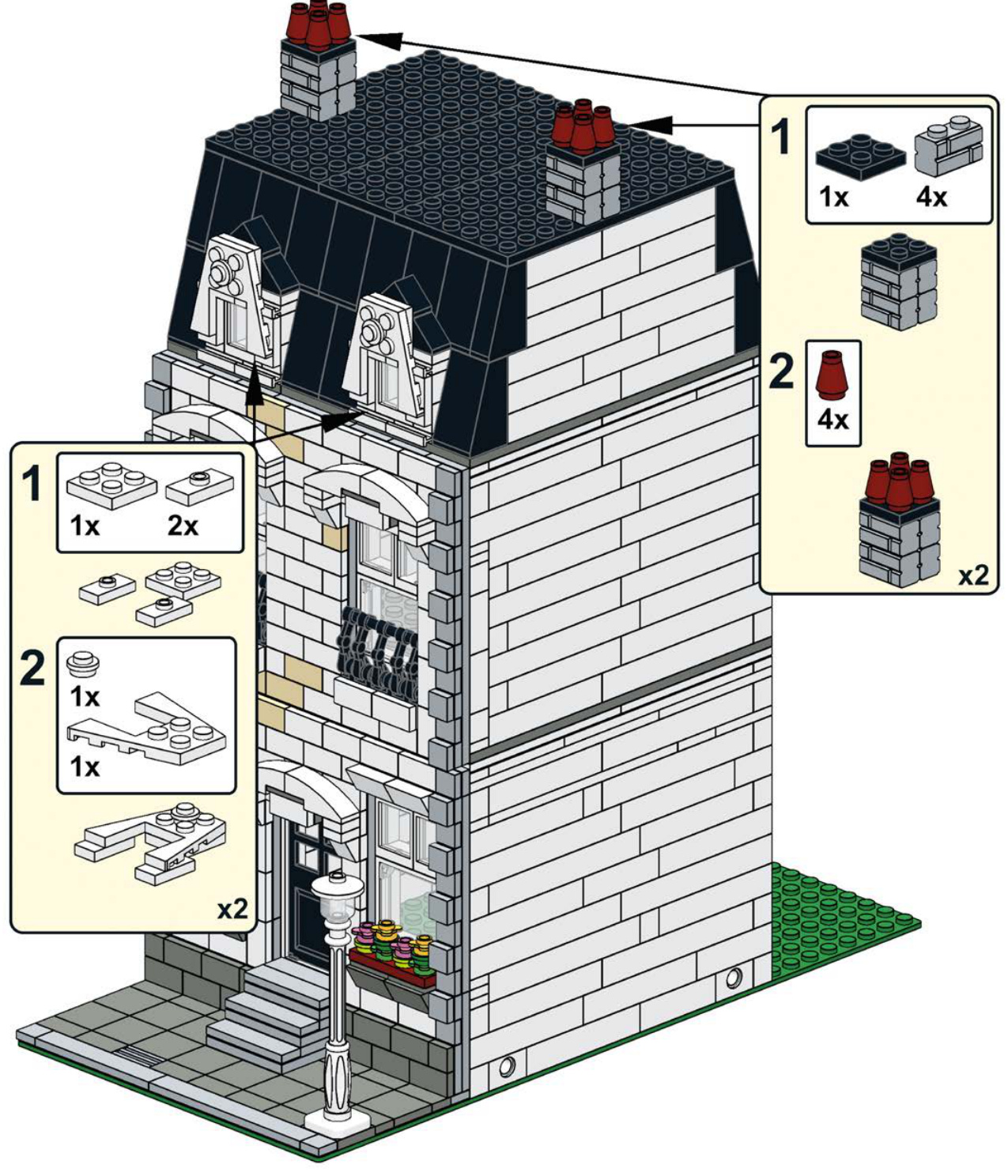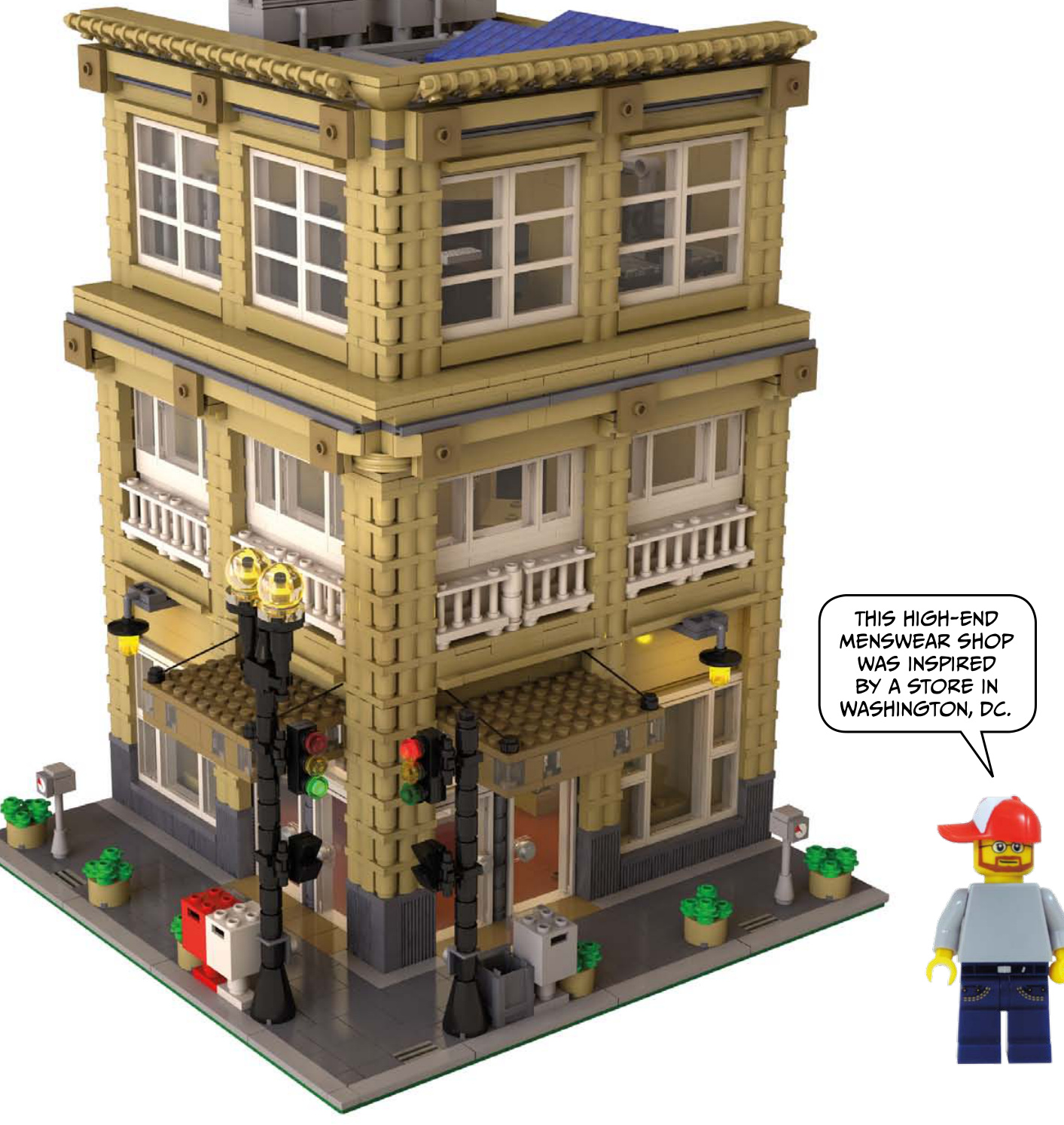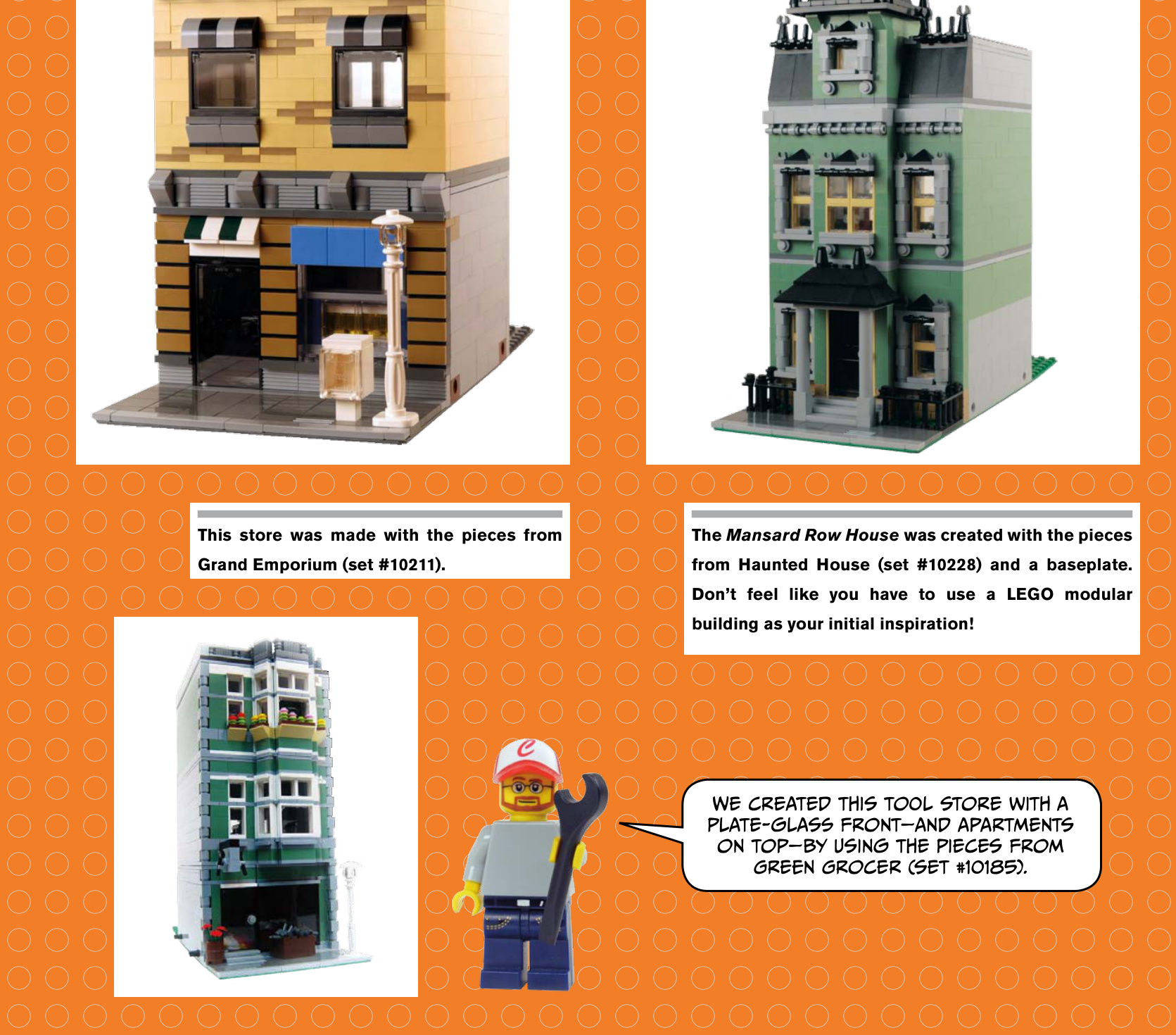 Have a look at some of the modular buildings that we’ve created. If you haven’t yet created an original LEGO build, we encourage you to give it a try. Get inspired by the models in this chapter, as well as those created by the LEGO Group.