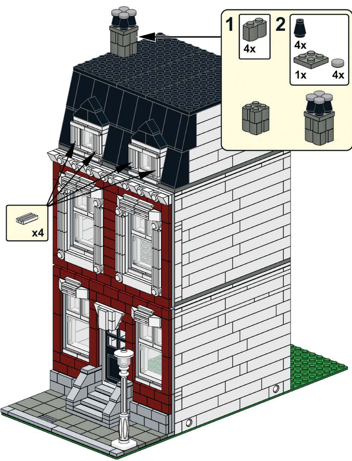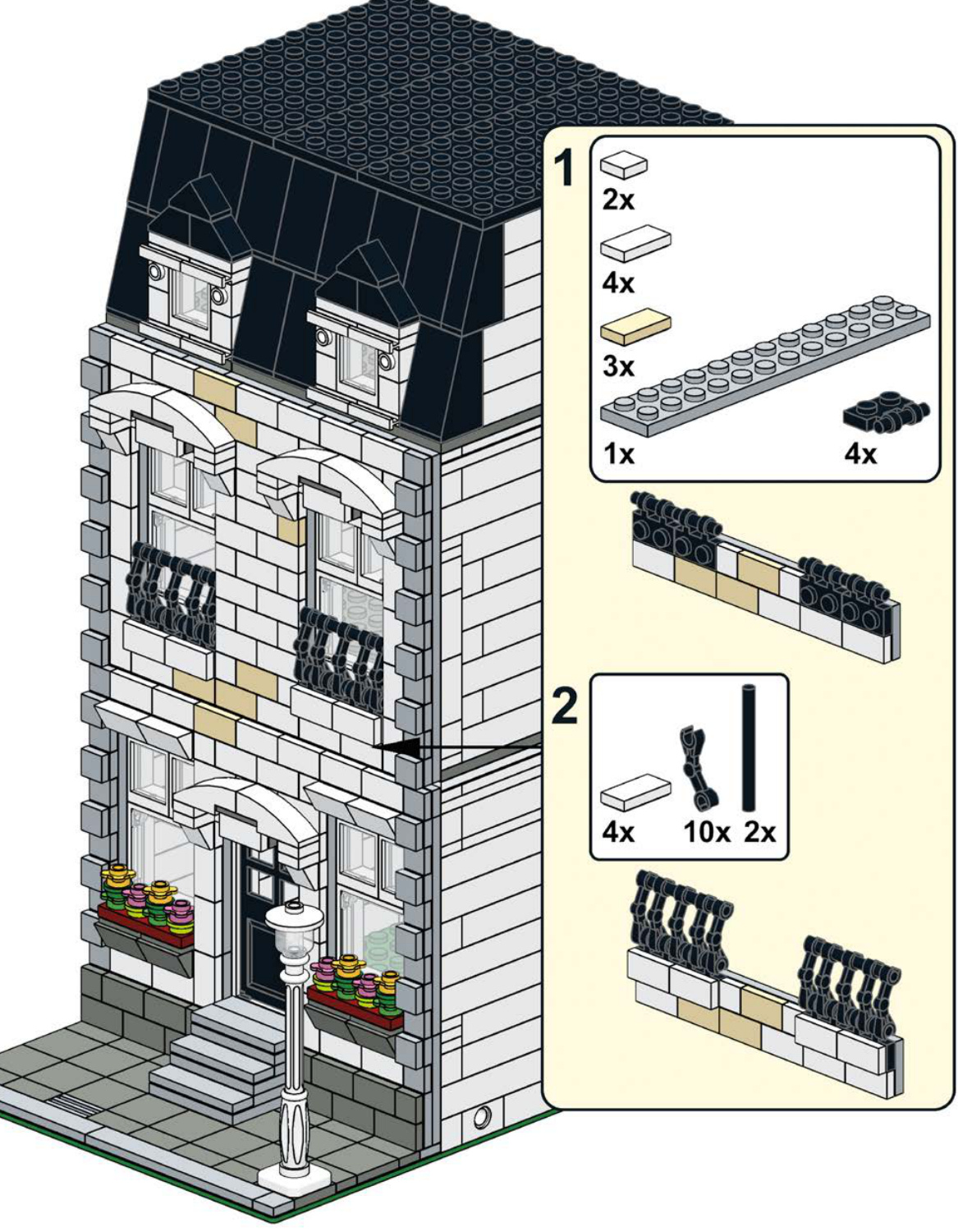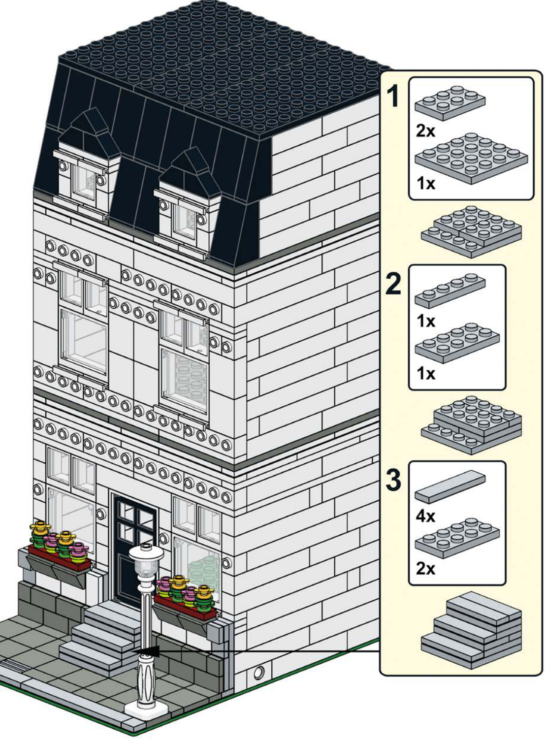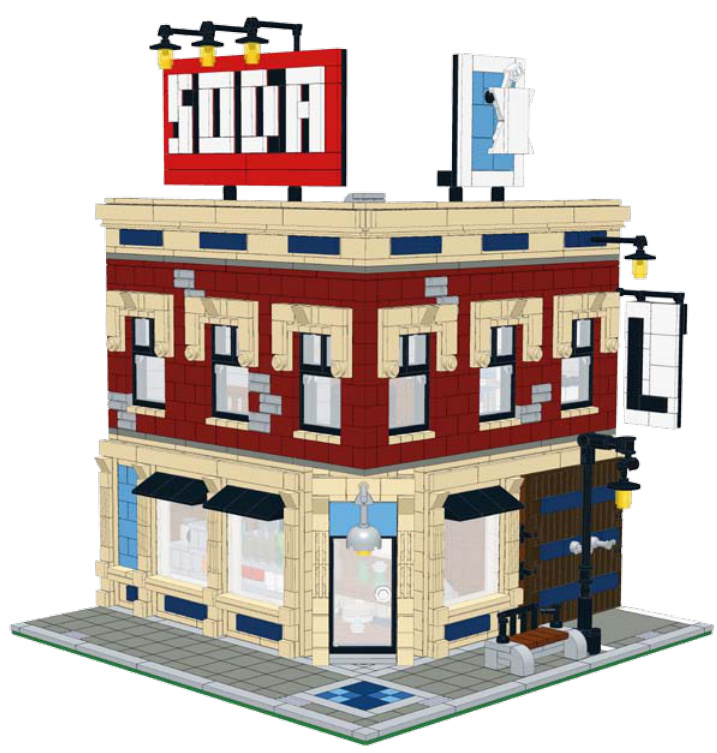 Have a look at some of the modular buildings that we’ve created. If you haven’t yet created an original LEGO build, we encourage you to give it a try. Get inspired by the models in this chapter, as well as those created by the LEGO Group.