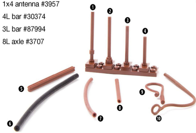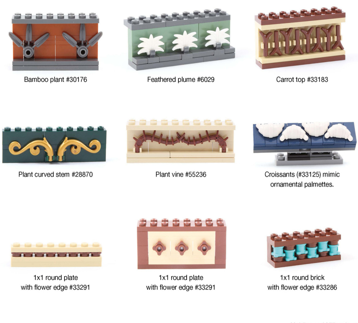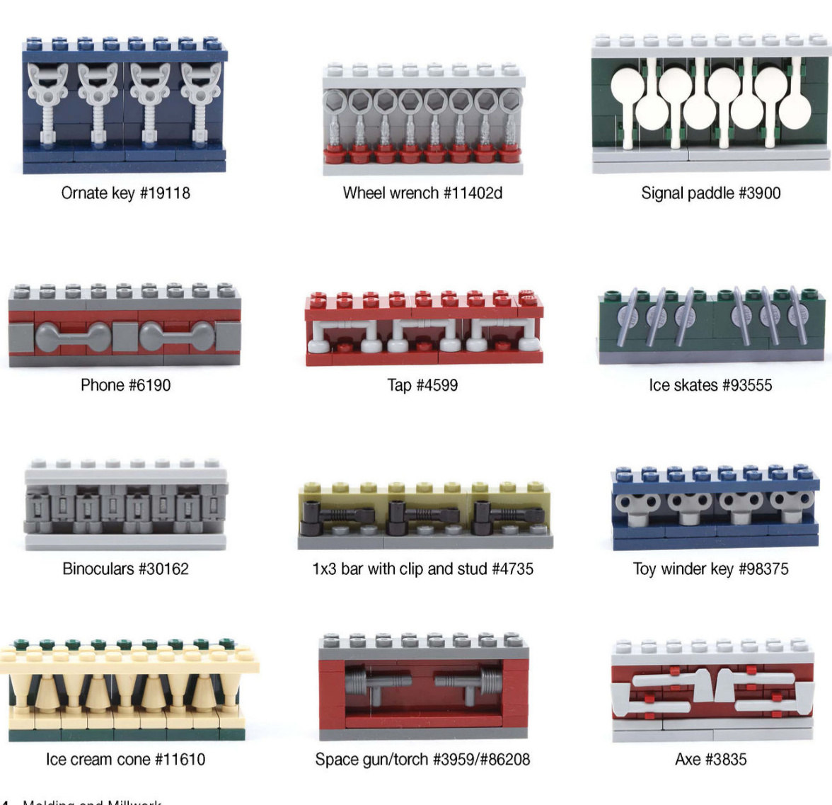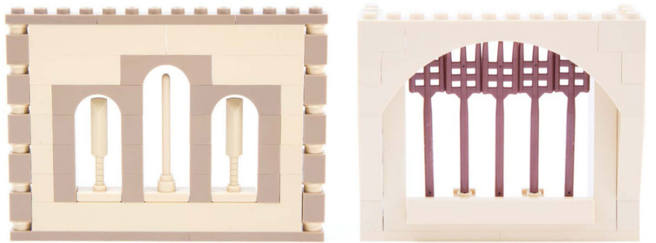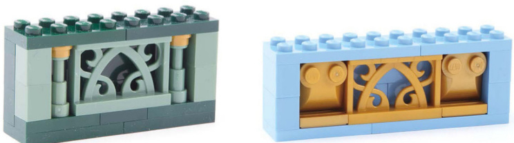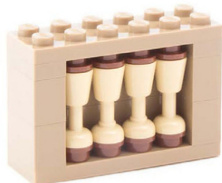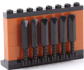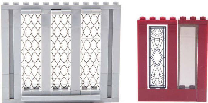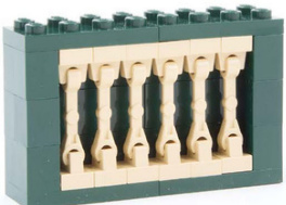 Create decorative mullions with interesting parts like cricketbats (by BrickArms) and pitchforks (#95345).