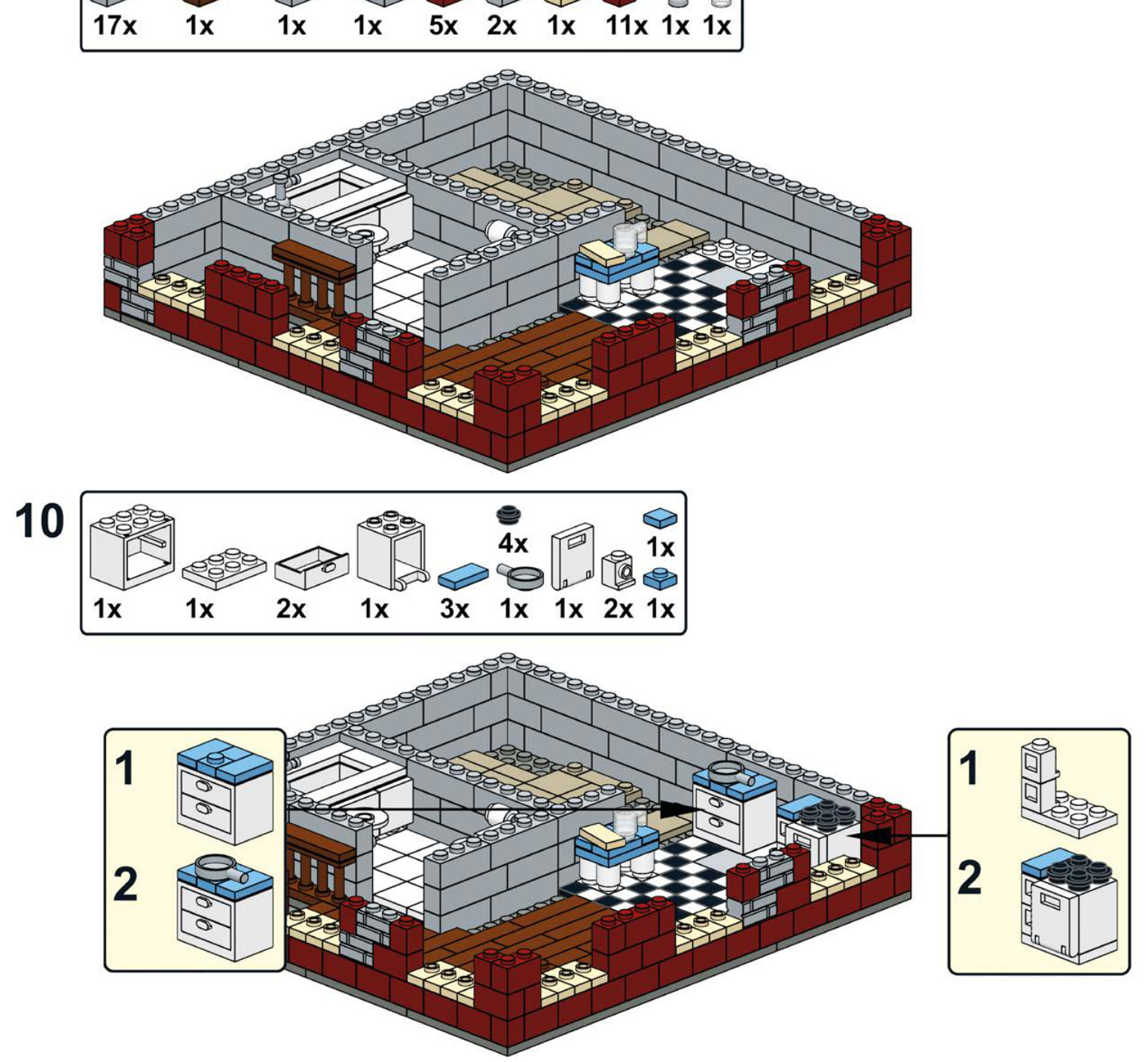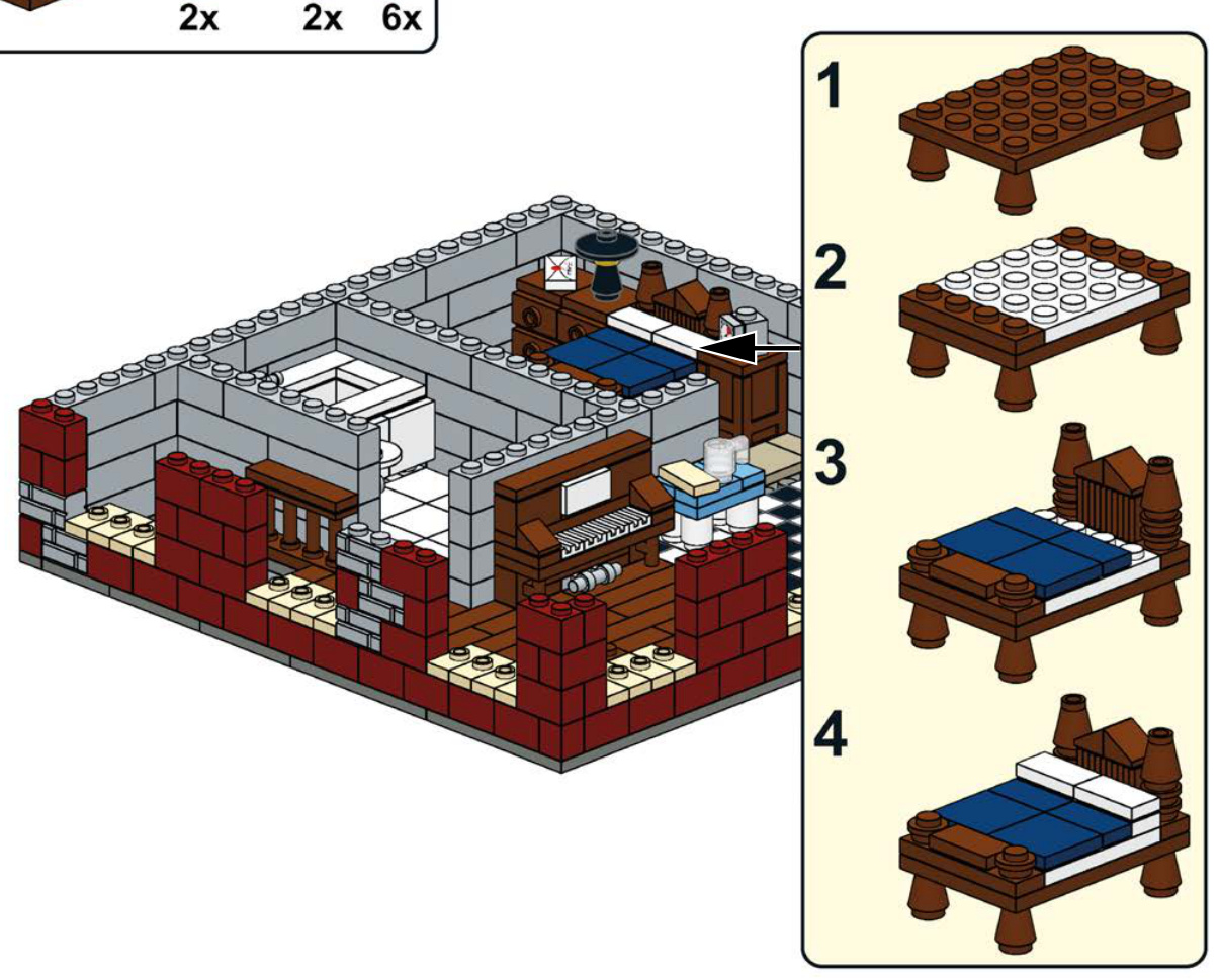 - 乐高卧室家具设计 - 床、梳妆台、儿童房